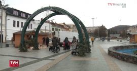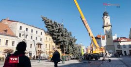 Osádzanie vianočného stromčeka na námestí SNP v Banskej Bystrici